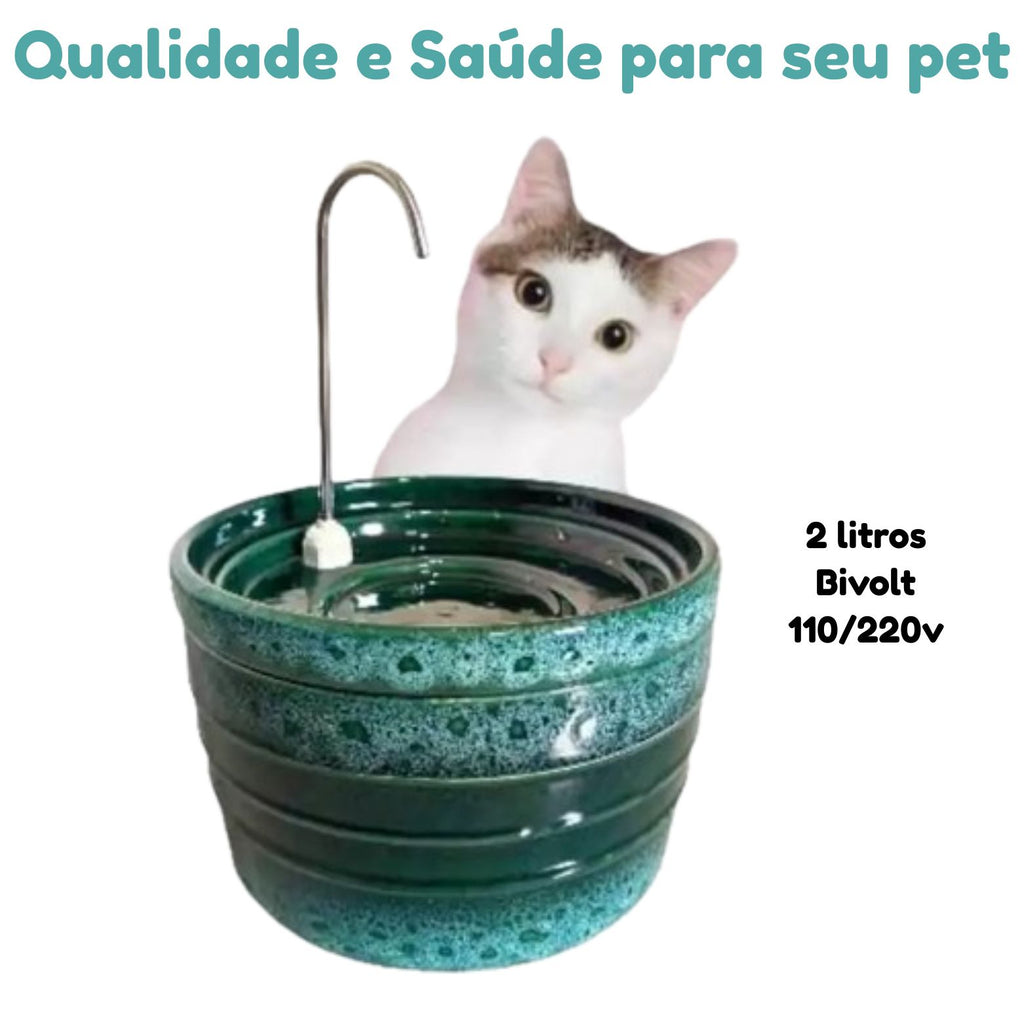 Você sabia que os gatos adoram beber água fresquinha e corrente? Isso é ótimo, pois a hidratação é essencial para a saúde renal e do trato urinário dos nossos amigos felinos. Pensando nisso, apresentamos a Fonte de Cerâmica com Bomba Submersa Bivolt, a solução perfeita para garantir que seu gato tenha sempre água limpa fresca e convidativa!